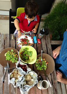 After brunch we headed to the park, fed some ducks and ended our day by grilling and eating outside. The cub specifically asked to eat 'afuera' so he got what he wanted, and I have to say, it was PERFECT.All in all a great day. Happy Mother's Day to all the lovely moms out there--especially mine and Jack's.